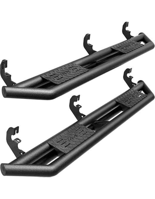 Made of rustproof aluminum tread plate with a rugged black powder coat these straight-style extra-wide oval.